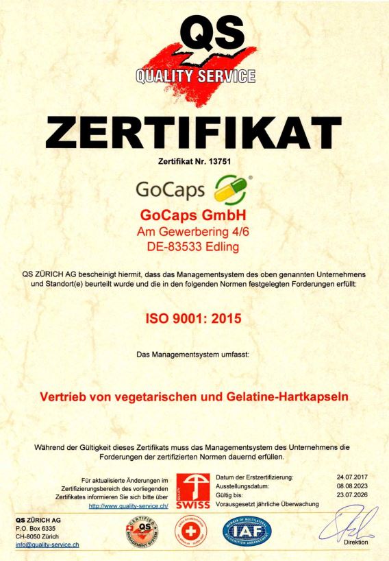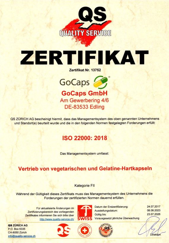 Unsere Kapseln sind nach FairTSA™ Processing Standards zertifiziert und setzen damit einen wichtigen sozialen Meilenstein. Der FairTSA™ Sozialstandard basiert auf den anwendbaren Konventionen der Internationalen Arbeitsorganisation (International Labor Organization Conventions) und garantiert deren Einhaltung. Die FairTSA™-Zertifizierung für die Herstellung der GoCaps® Kapseln beinhaltet, dass während der Verarbeitung diese Konventionen eingehalten werden und dies durch einen nach ISO 17065 akkreditierten Zertifizierer überprüft ist. Weitere Details dazu finden Sie auch unter www.fairtsa.org.